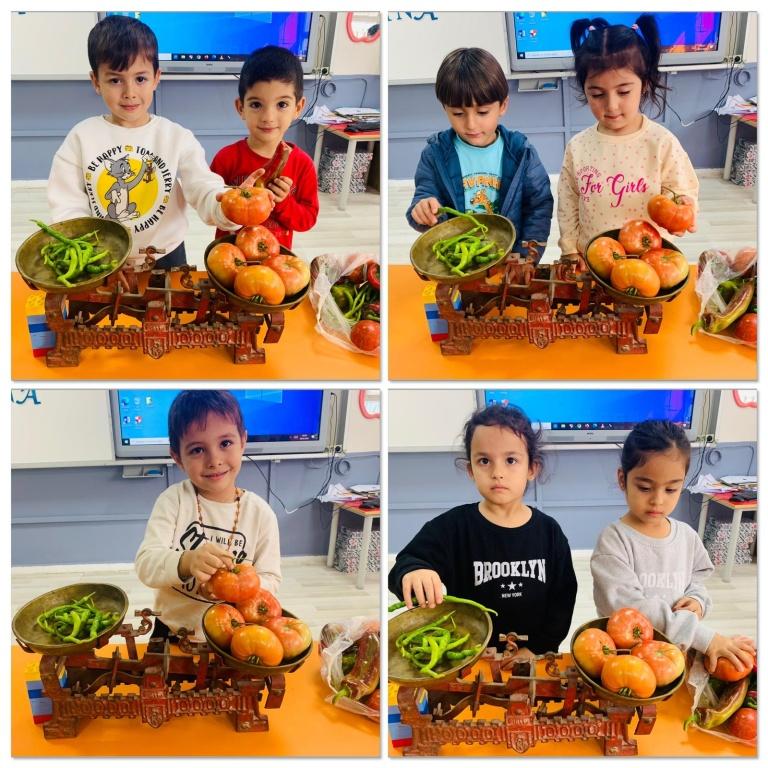 Ağır ve hafif kavramını öğrenen anasınıfı öğrencilerimiz bahçemizden topladıkları domates ve biberler ile ağır ve hafif kavramlarını eğlenceli bir etkinlikle pekiştirdi.